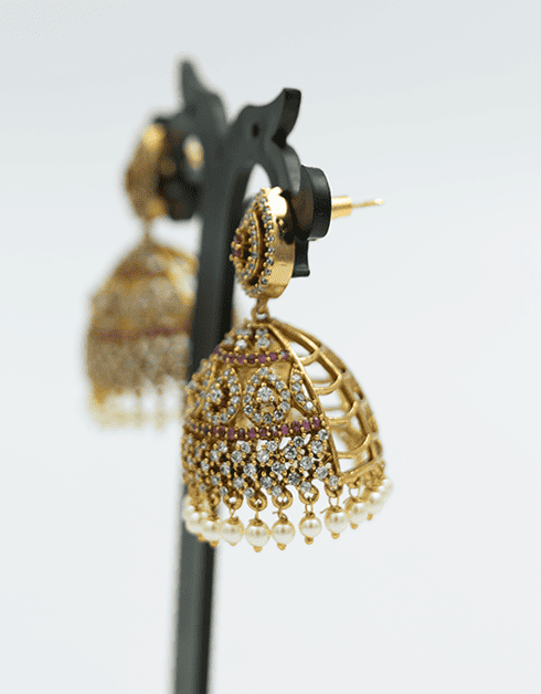 Exquisite Antique Gold-Toned Jhumka Earrings