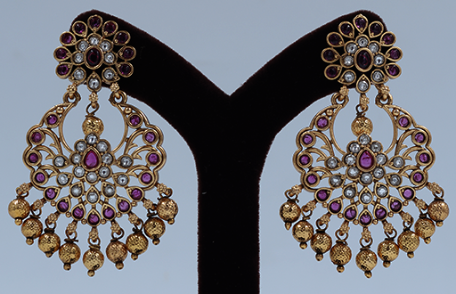Gold Earrings With Red Stones
